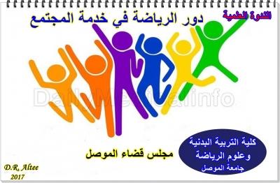 يقيم مجلس قضاء الموصل وبالتعاون مع كلية التربية البدنية وعلوم الرياضة جامعة الموصل الندوة العلمية وتحت عنوان ( دور الرياضة في خدمة المجتمع ) يوم الاحد 2017/4/30 الساعة العاشرة صباحاً في مدينة الموصل الساحل الايسر وعلى قاعة نادي المستقبل المشرق الرياضي والدعوة عامة للمشاركة والحضور