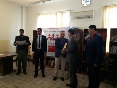 شارك الدكتور رائد ابراهيم الطائي منسق اعلام كلية التربية البدنية وعلوم الرياضة في الدورة التدريبية للاعلام التي نظمتها شبكة تطوع معنا للتنمية والاغاثة عن كتابة و تحرير وادارة الخبر الصحفي واستغرت الدورة ثلاثة ايام من الفترة 2/27 لغاية 3/1 ادارها االاعلامي غسان خضر وتم في نهاية الدورة تقديم شهادات تدريبية للمشاركين بالدورة