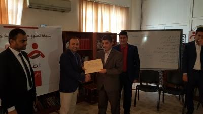 مشاركة الدكتور رائد ابراهيم الطائي منسق اعلام الكلية في الدورة التدريبية للاعلام عن تحرير وادارة الخبر الصحفي التي نظمتها شبكة تطوع معنا للتنمية والاغاثة