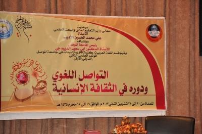 شارك الاستاذ الدكتور قتيبة زكي طه التك عميد كلية التربية الرياضية في المؤتمر العلمي الثاني لكلية التربية بنات قسم اللغة العربية تحت شعار (التواصل اللغوي ودوره في الثقافة الانسانية) للمدة من 20 الى 21 تشرين الثاني 2013