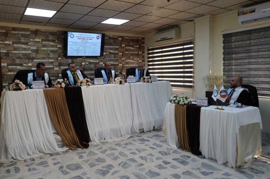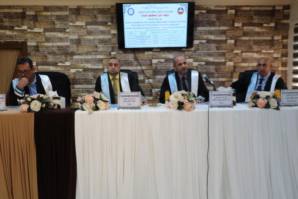 ترأس لجنة المناقشة الاستاذ الدكتور وليد غانم ذنون وعضوية كل من الاستاذ الدكتور علاء الدين فيصل خطاب والاستاذ المساعد الدكتور نواف عويد عبود، وباشراف وعضوية الاستاذ الدكتور محمد خليل محمد