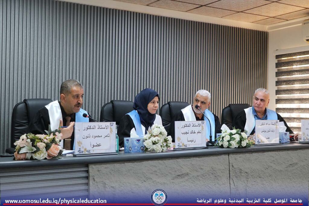 ناقشت كلية التربية البدنية وعلوم الرياضة بجامعة الموصل رسالة ماجستير عن أثر توظيف بيئة تعلم الكترونية قائمة على تكنولوجيا التعليم في الأداء الفني لبعض مهارات كرة القدم وتنمية الذكاء الحركي ، يوم الاحد المصادف 1/9 /2024،