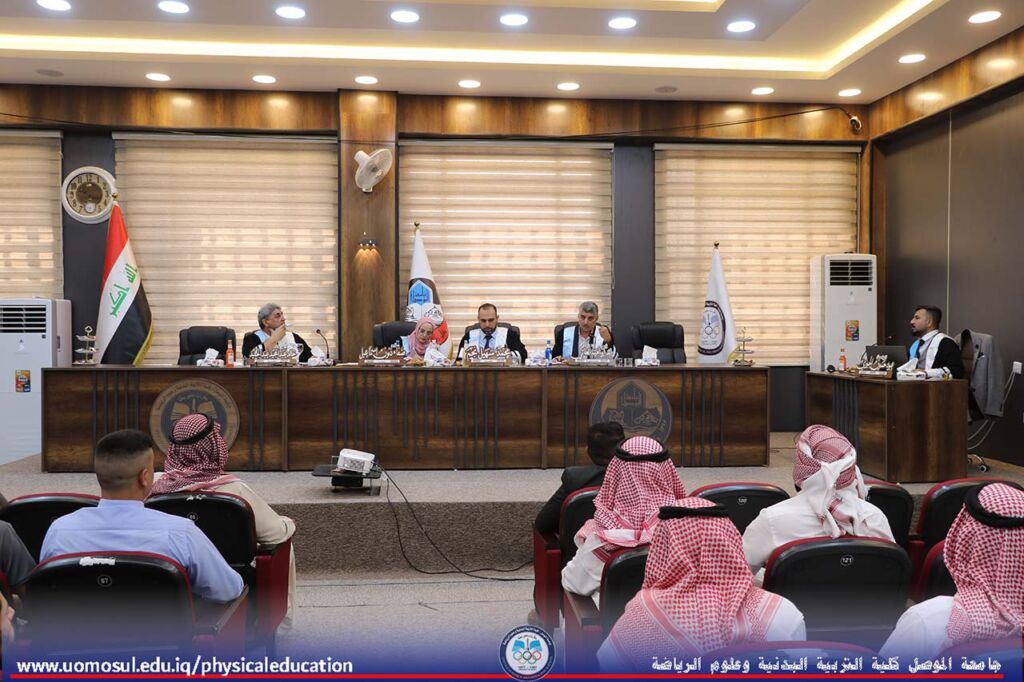 ناقشت كلية التربية البدنية وعلوم الرياضة بجامعة الموصل رسالة ماجستير عن الكفايات الثقافية في علم النفس الرياضي وعلاقتها بالرضا الوظيفي والرفاهية النفسية لدى مدرسي التربية الرياضية في يوم الاحد 1/9 / 2024،