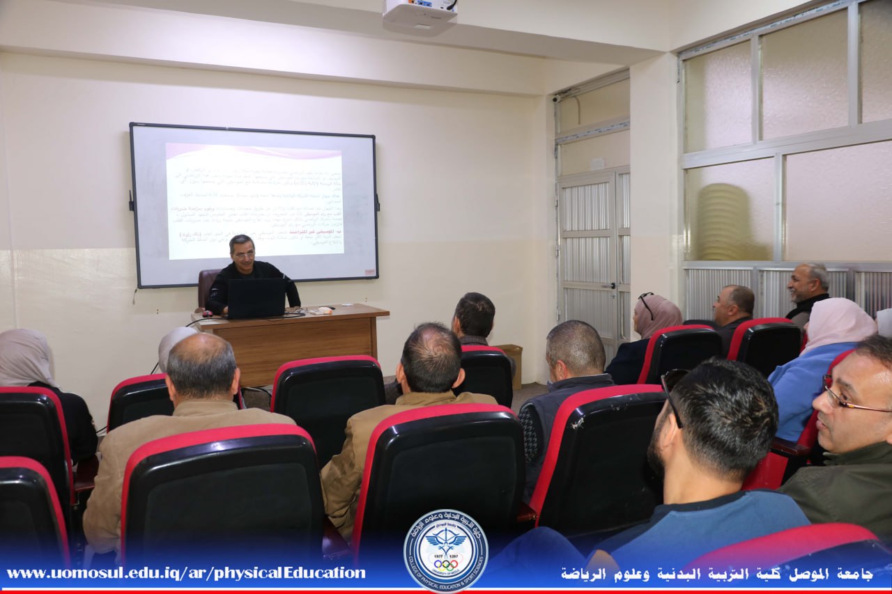 قدّم الورشة الدكتور محمد سعد بحضور عدد من أساتذة وطلبة الكلية والمهتمين بالمجال الرياضي.