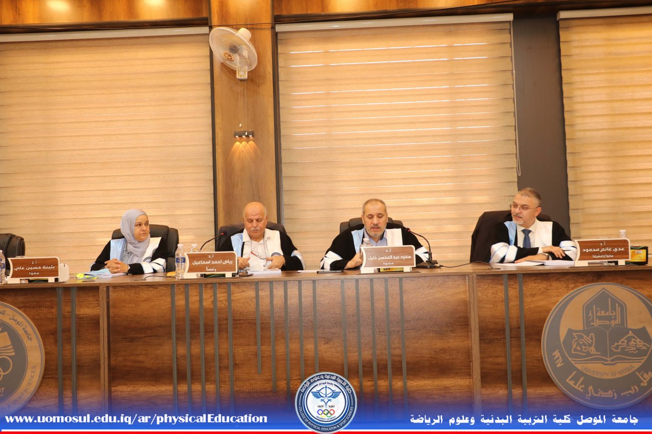 شهدت كلية التربية البدنية وعلوم الرياضة مناقشة رسالة ماجستير عن علاقة رؤساء اقسام رعاية الموهبة الرياضية مع الموظفين ودورها في الحد من الاحتراق الوظيفي لديهم في العراق يوم الخميس 21 اب 2025