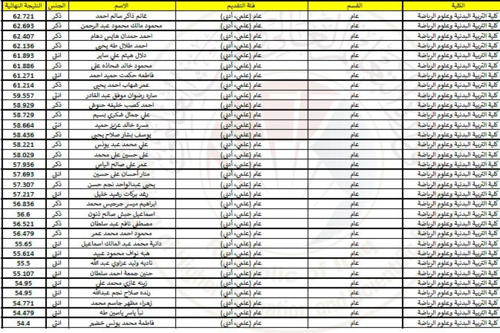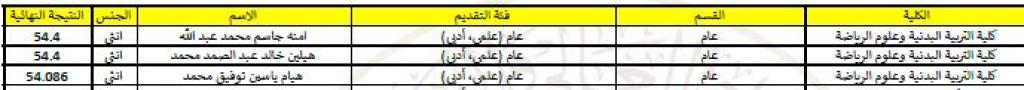 نتائج القبول المباشر الدور الثالث للعام الدراسي 2019-2020 لكلية التربية البدنية وعلوم الرياضة / جامعة الموصل
