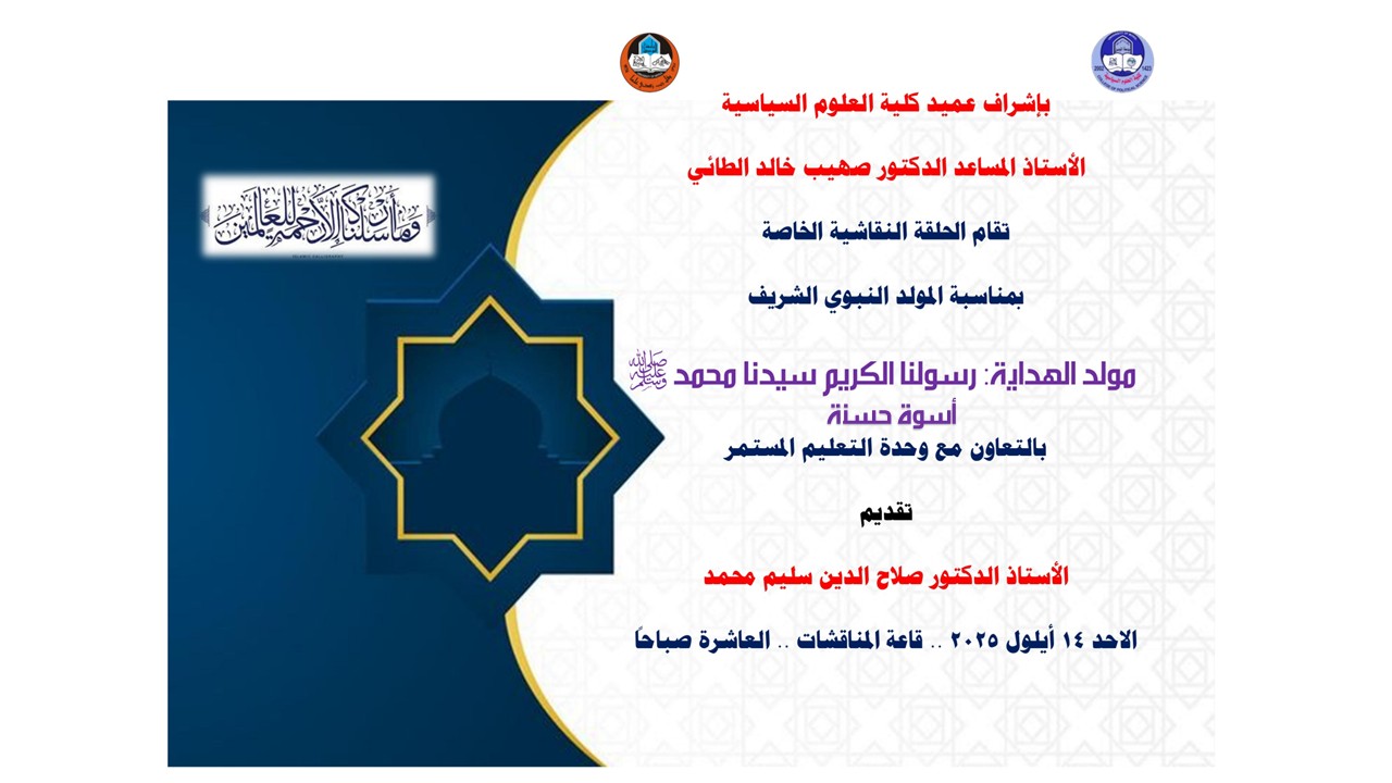 🟢 بإشراف عميد كلية العلوم السياسية الأستاذ المساعد الدكتور صهيب خالد جاسم الطائي المحترم تقيم كلية العلوم السياسية جامعة الموصل، وبالتعاون مع: مجلس حماية وتحسين [إقرأ المزيد]