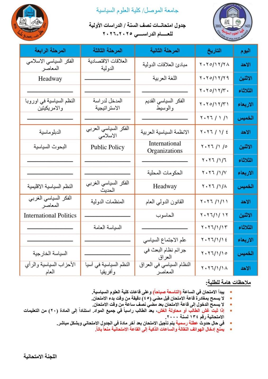 على بركة الله اجتمعت اللجنة العلمية لفرع السياسة العامة بكلية العلوم السياسية في جلستها السادسة بتاريخ 16شباط 2014 بحضور الأعضاء كافة ، وناقشت جملة من الامور منها توزيع المواد الدراسية على طلبة الدراسات العليا (الماجستير) للفصل الثاني من العام الدراسي الحالي 2014/2013