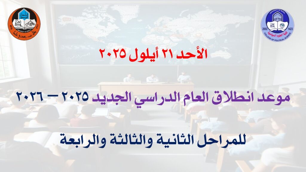 كلمة عميد كلية العلوم السياسية جامعة الموصل الأستاذ المساعد الدكتور صهيب خالد جاسم الطائي لمناسبة انطلاق العام الدراسي الجديد 2025 - 2026