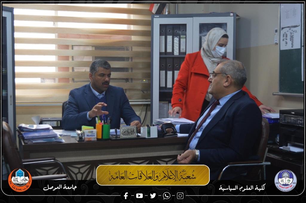 الأستاذ المساعد الدكتور طارق محمد طيب ظاهر عميد كلية العلوم السياسية يجري جولة تفقدية في الفروع العلمية