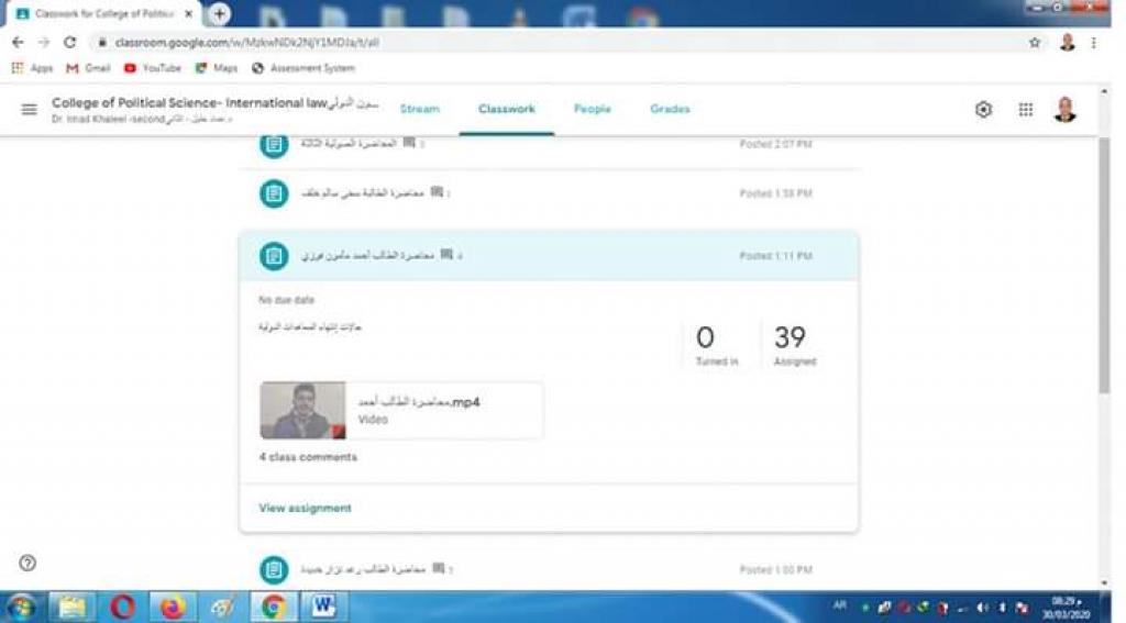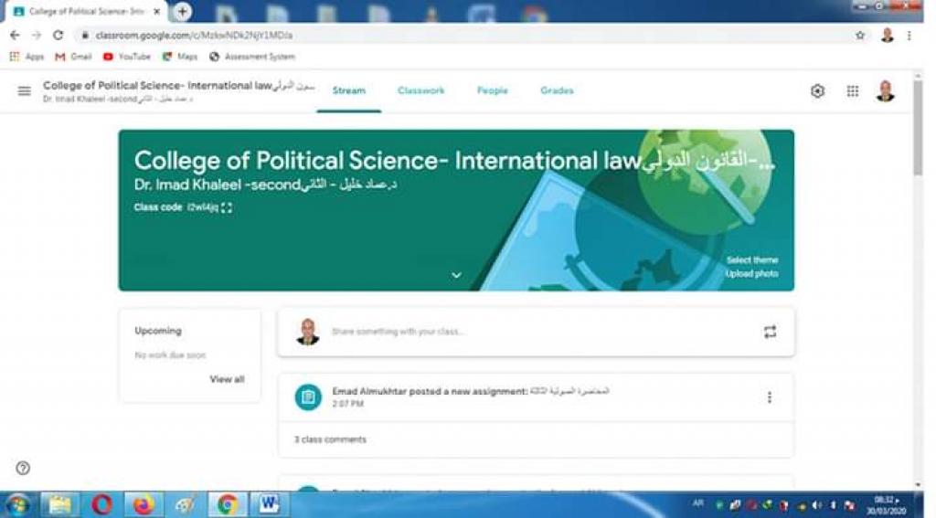 بالنظر للظروف الحالية التي يمرّ بها العراق والعالم من التداعيات التي ألقت بها (جائحة كورونا) على التعليم الجامعي ومنه ما يتعلق بالجامعات العراقية بصفة عامة وجامعة الموصل بصفة خاصة ، واستناداً الى التوجيهات الوزارية الخاصة بالتعليم الالكتروني فضلاً عن توجيهات جامعة الموصل ، فقد شرعت كلية العلوم السياسية وضمن إطار تفعيل التعليم الالكتروني وزيادة التواصل والتفاعل العلمي مع الطلبة ، فقد قام عدد من طلبة الكلية في المرحلة الدراسيةالثانية بإعداد المحاضرات العلمية التي تلقّوها في مادة القانون الدولي بإشراف الأستاذ المساعد الدكتور عماد خليل ابراهيم رئيس فرع العلاقات الدولية ، وكانت حصيلة هذا الأسبوع المحاضرات الآتية:
