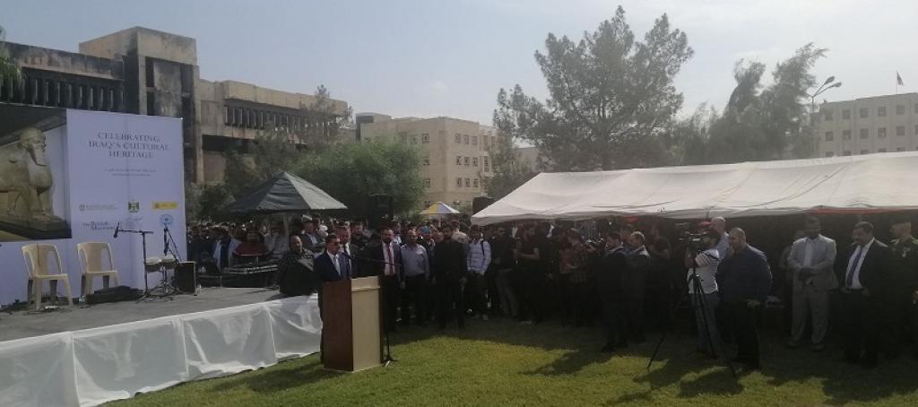 في عرس ثقافي وحضاري لجامعة الموصل ومدينتها وبرعاية رئيسها الاستاذ الدكتور قصي كمال الدين الاحمدي شارك السيد عميد كلية العلوم السياسية الدكتور أحمد فكاك البدراني حفلا مركزيا فنياً وثقافياً على مسرح اعد خصيصاً لمناسبة افتتاح نصبي الثورين المجنحين في حداثق المركز الطلابي صباح يوم الخميس الموافق 24 تشرين الاول وبحضور مميز ولافت للنظر من شخصيات ومسؤولين محليين ودوليين كبار المستوى فقد شهد الحفل حضور كل من قائد عمليات نينوى اللواء الركن نومان عبد نجم الزوبعي ومحافظ نينوى المهندس منصور المرعيد والنائبان عن نينوى رئيس لجنة التربية والتعليم النيابية مقداد الجميلي ونائب رئيس لجنة الصحة والبيئة النيابية الدكتور فارس البريفكاني وعضو مجلس النواب العراقي صائب خدر و السفير البريطاني في العاصمة بغداد جون ويلكس وقنصلها في اربيل جيمس نورنتن والسفير الاسباني خوان هانسي اسكوبار وقنصلها الفخري في اربيل وملحقي الدولتين العسكريين ومسؤولين من وزارة الثقافة والاعلام وعمداء الكليات جامعة الموصل وجمهور غفير من منتسبيها وطلبتها .حيث كانت هناك كلمات متتالية تحدثت عن اهمية عودة الحياة للمدينة وجامعتها مؤكدين على اصرار اهالي محافظة نينوى بكل مسمياتهم على النهوض بها عمرانياً واجتماعياً وثقافيا كواحدة من المدن المتقدمة والمزدهرة وكونها فريدة بتنوعها الاجتماعي وتعايش سكانها السلمي الذي يتميزون به منذ القدم.