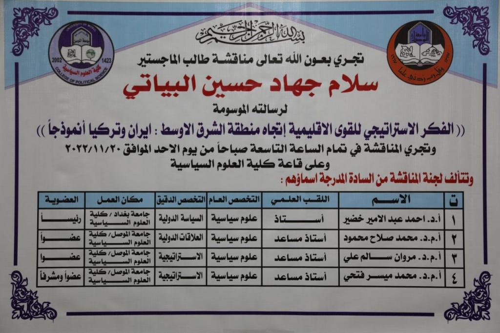 الفكر الإستراتيجي للقوى الإقليمية إتجاه منطقة الشرق الأوسط عنوان لرسالة ماجستير جرى مناقشتها في كلية العلوم السياسية