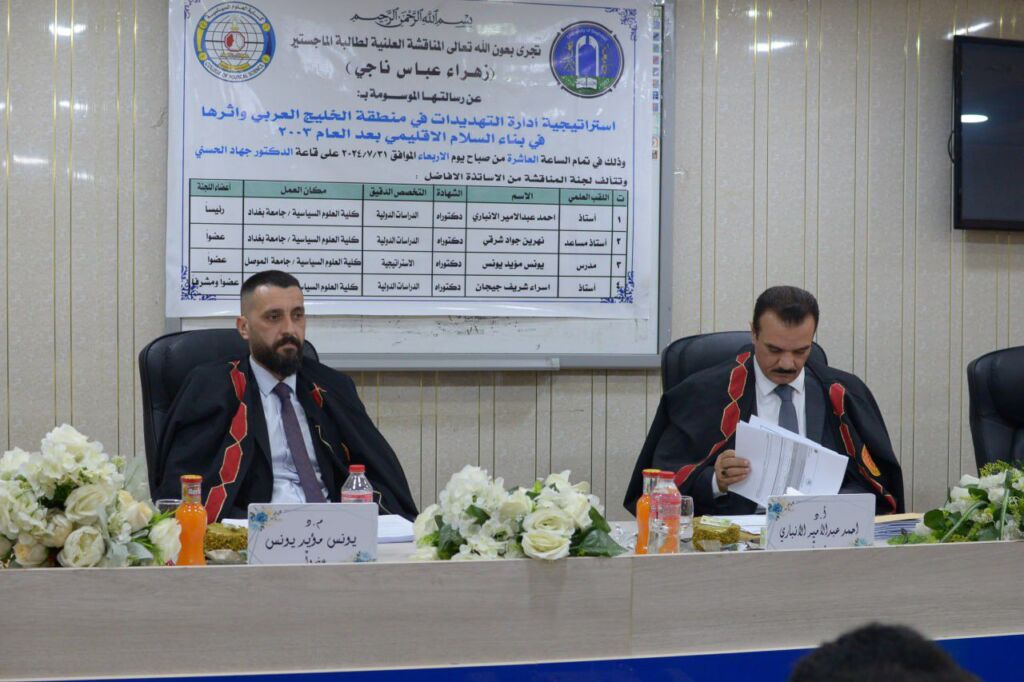 المدرس المساعد رشا سهيل محمد تنتهي من مناقشة أطروحتها للدكتوراه عن التحولات المعاصرة للقوة والعمادة تهنئ