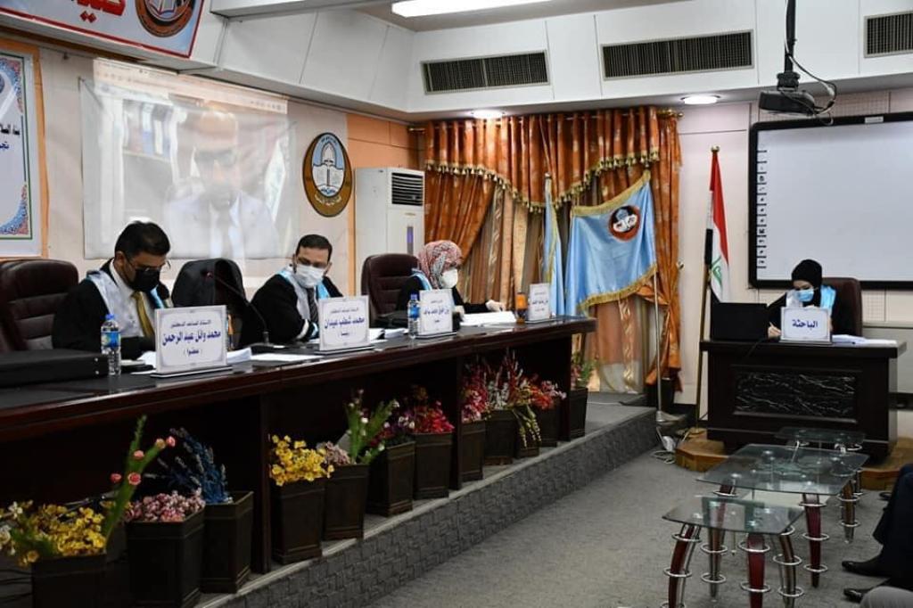 بحضور السيد رئيس الجامعة المحترم الاستاذ الدكتور قصي كمال الدين الاحمدي مناقشة لرسالة ماجستير في كلية العلوم السياسية