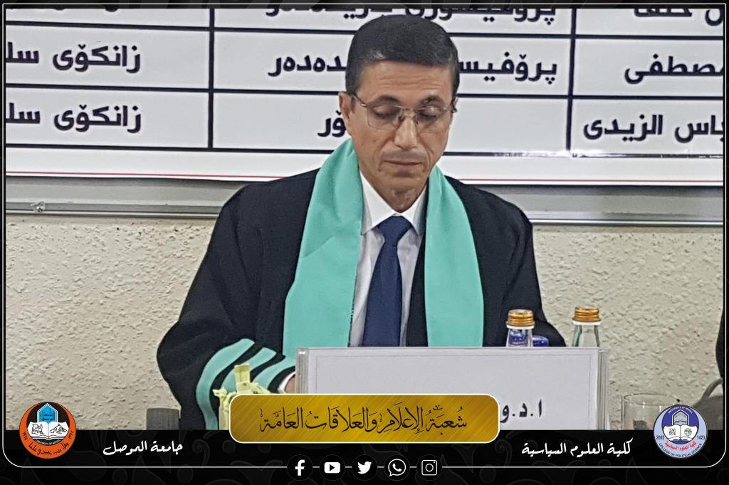ترأَس الأستاذ الدكتور وليد سالم محمد رئيس فرع السياسية العامة للجنة مناقشة رسالة ماجستير في جامعة السليمانية