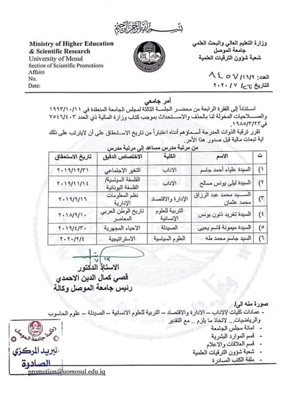 ترقية السيد جاسم محمد طه التدريسي في فرع العلاقات الدولية بكليتنا إلى مرتبة مدرس