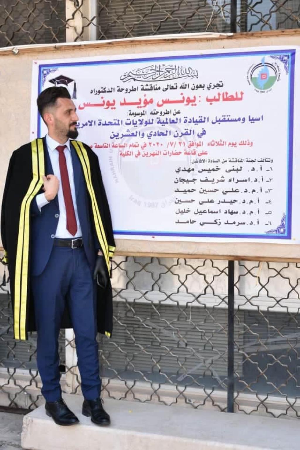 تتقدم عمادة الكلية ومنتسبوها بالتهنئة للدكتور (يونس مؤيد يونس) التدريسي في فرع العلاقات الدولية بكليتنا ، بمناسبة حصوله على شهادة الدكتوراه في العلوم السياسية من كلية العلوم السياسية في جامعة النهرين ، وبتقدير (امتياز) مع التمنيات له بالتوفيق والمزيد من النجاح.