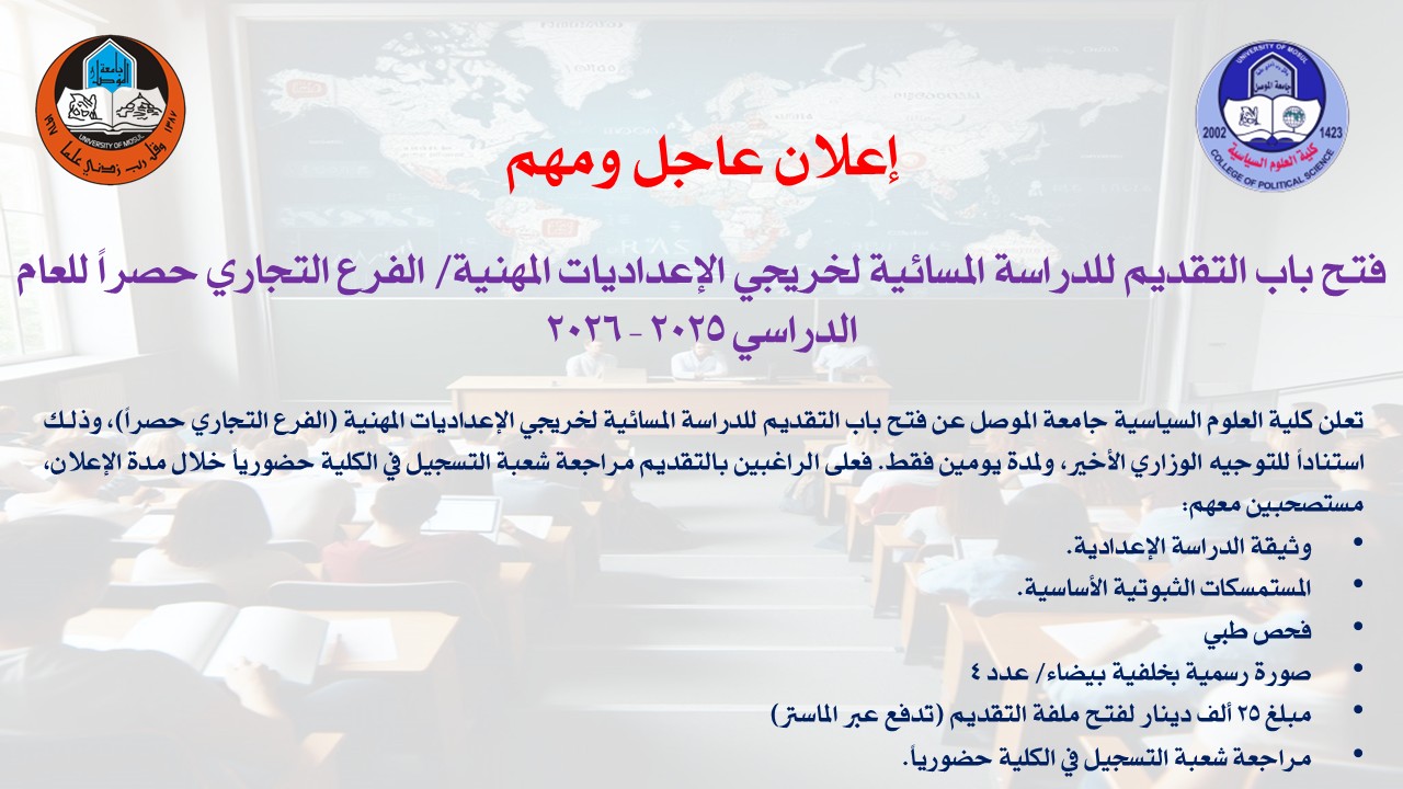 رسالة ماجستير في كلية العلوم السياسية جامعة الموصل تناقش الرقابة الشعبية ودورها في عقلنة السلوك السياسي للأحزاب السياسية