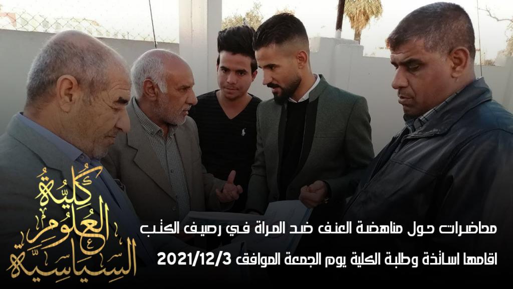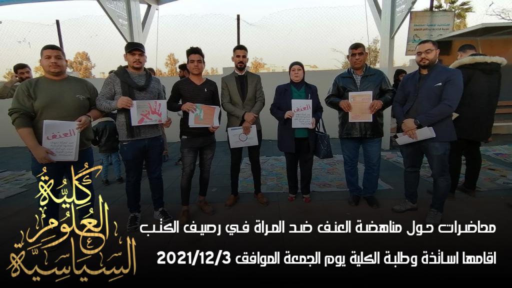 ضمن حملة 16 يوم من مناهضة العنف ضد المرأة نشاطات وفعاليات لكلية العلوم السياسية في رصيف الكتب