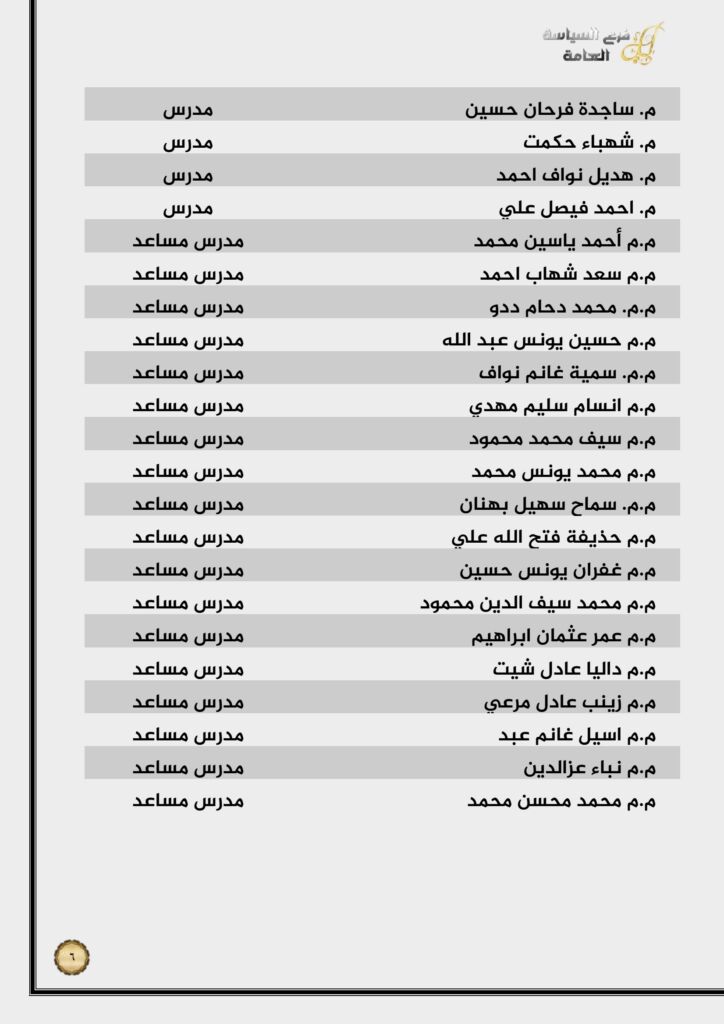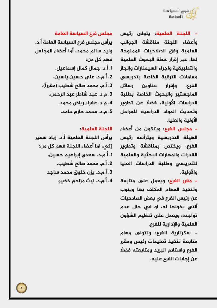 النشاطات العلمية والمجتمعية لفرع السياسة للعام الدراسي 2023-2024