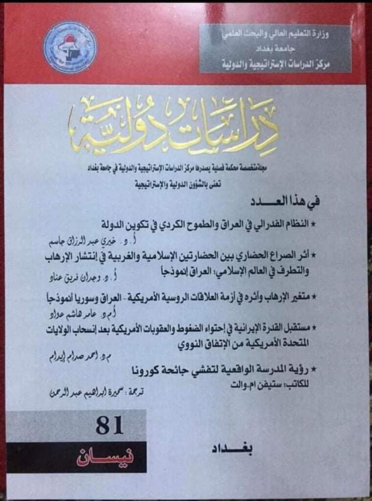 مجلة دراسات دولية تنشر بحثاً للدكتور محمد صلاح محمود التدريسي في كليتنا