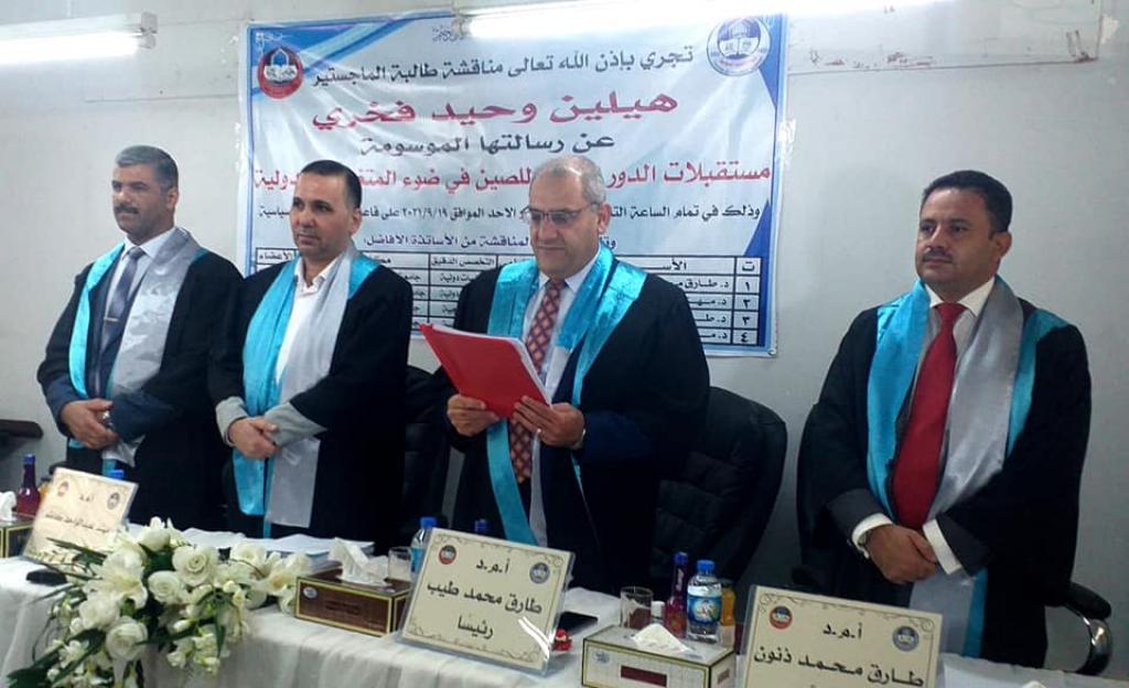 كلية العلوم السياسية تشهد مناقشة رسالة الماجستير الموسومة (مستقبلات الدور الدولي للصين في ضوء المتغيرات الدولية)