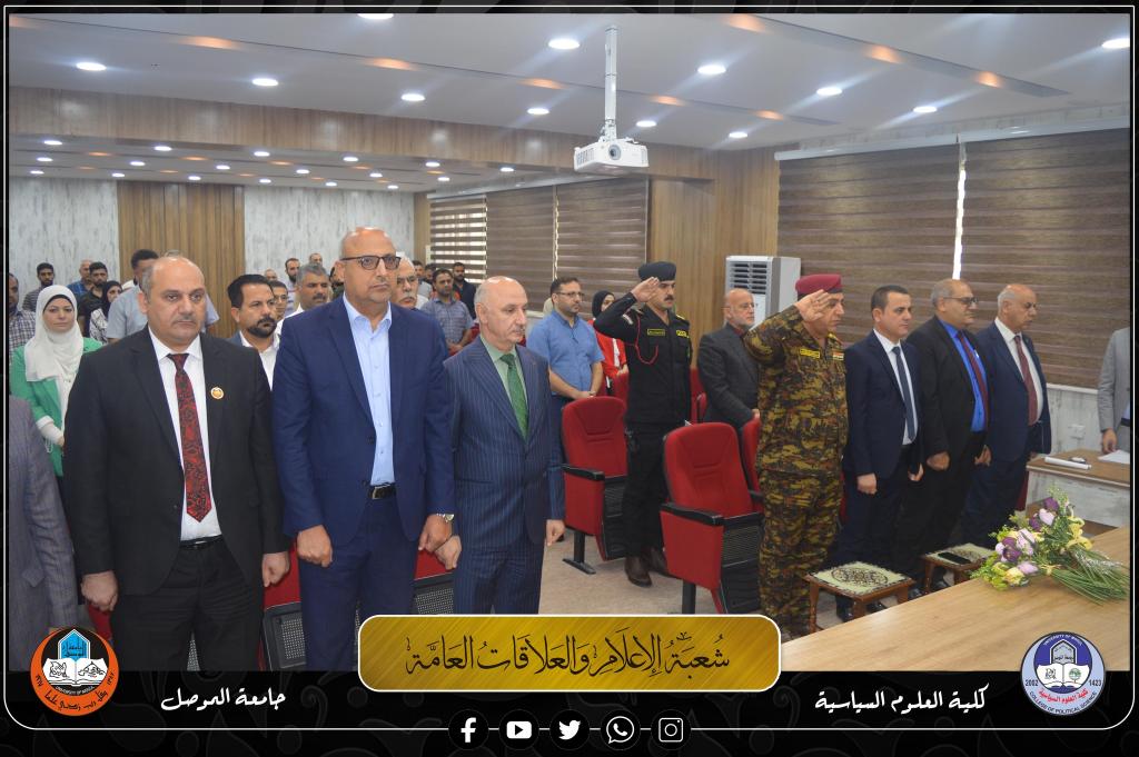 برعاية الأستاذ المساعد الدكتور طارق محمد طيب ظاهر عميد كلية العلوم السياسية، وبالتعاون مع وحدة التعليم المستمر، اقامت كلية العلوم السياسية ورشة علمية بمناسبة اليوم الوطني العراقي يوم الأحد الموافق 9 تشرين الأول 2022.حضر الورشة الأستاذ الدكتور وحيد محمود رمو الإبراهيمي مساعد رئيس الجامعة للشؤون الإدارية، واللواء الركن عبد الخالق الخيكاني مدير المركز المشترك لأمن واستخبارات نينوى، وعدد من السادة العمداء أعضاء مجلس جامعة الموصل. وعدداً من الأستاذة والباحثين وطلبة الدراسات العليا.وقد شهدت جلستي الورشة استعراضاً للذاكرة العراقية بدأً من تأسيس الدولة العراقية عام 1921 وحتى يومنا هذا، التي جسدت مراحل النضال الوطني العراقي للتخلص من السيطرة الاستعمارية، ومراحل تنامي دور العراق السياسي والاقتصادي في المحافل والمنظمات الدولية في ظل عصبة الأمم ومنظمة الأمم المتحدة. كما تم الحديث عن أبرز التحديات التي تعترض مسار العملية السياسية العراقية في الوقت الراهن، فضلاً عن تحديد الوسائل والآليات الناجعة الكفيلة بعودة الدور الريادي للعراق عربياً وعالمياً. وفي ختام اعمال الورشة تم فتح باب المناقشة والتعقيب للسادة الحاضرين بغية اثراء الموضوعات التي تم طرحها خلال جلستي الورشة.موقع كلية العلوم السياسية على الويب https://www.uomosul.edu.iq/ar/politicalScienceموقع كلية العلوم السياسية على منصة تويتر https://twitter.com/SciencesCollegeموقع كلية العلوم السياسية على منصة يوتيوبhttps://www.youtube.com/channel/UCm1S8mj-ObhfAKwBdLnU9MQ