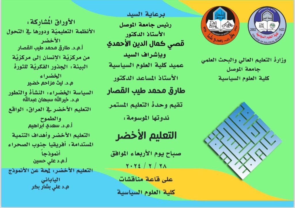 من اجل زيادة فاعلية أنشطة كلية العلوم السياسية وانفتاحها على قطاعات ووظائف أوسع ومنها التراث الموصلي قامت لجنة تمكين المرأة متمثلة بالدكتورة عفراء رياض محمد ومجموعة من الكادر الوظيفي وبالتعاون مع وحدة التعليم المستمر بزيارة ميدانية لـ(بيت التراث الموصلي) و كان الهدف من هذه الزيارة هو الاطلاع على التراث الثقافي الموصلي ومحاكاة لهذا التراث الذي يعد امتدادا للحاضر والمستقبل..