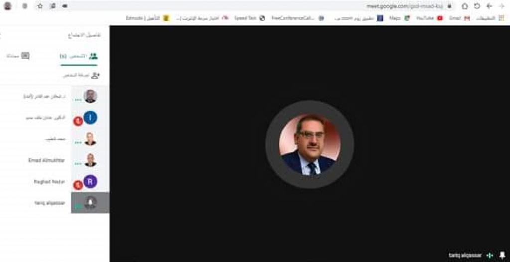 عقد مجلس كلية العلوم السياسية اجتماعه الدوري مساء يوم الأربعاء الموافق ١٠ / ٦ / ٢٠٢٠ برئاسة الأستاذ المساعد الدكتور طارق محمدطيب ظاهر عميد الكلية وبحضور أعضاء المجلس كافة عبر برامج الفضاء الإلكتروني ..