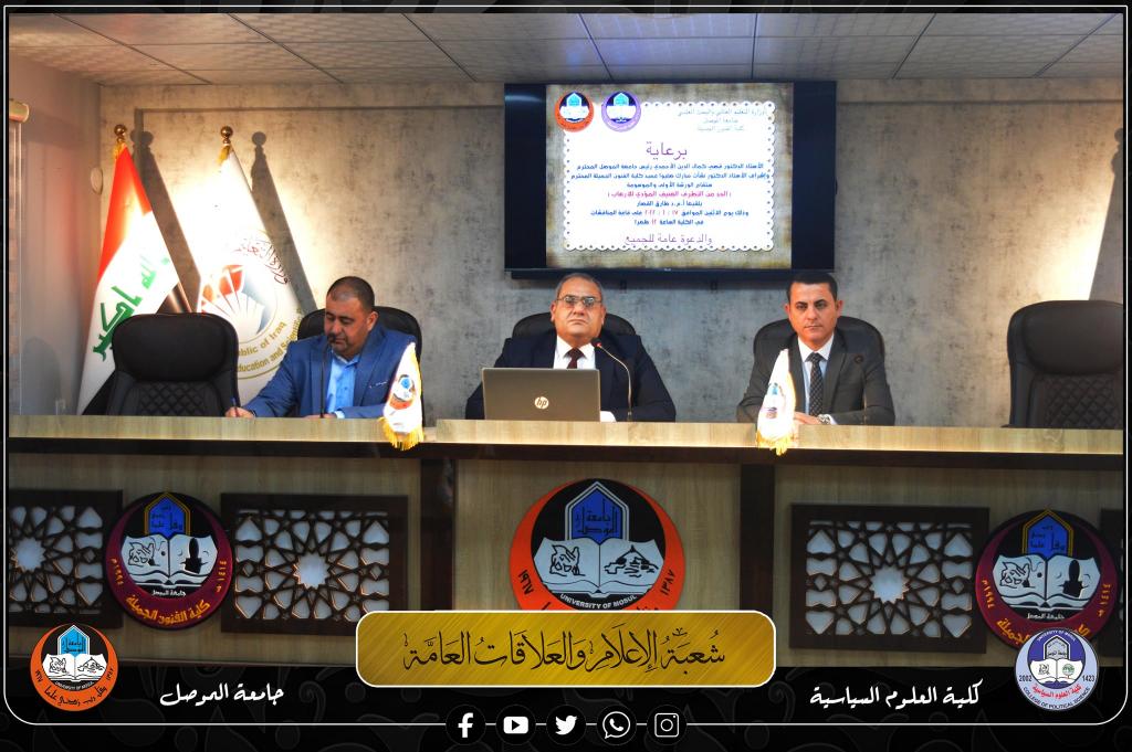 شارك الأستاذ المساعد الدكتور طارق محمد طيب ظاهر، عميد كلية العلوم السياسية، في ورشة العمل التي اقامتها كلية الفنون الجميلة، والموسومة “الحد من التطرف المؤدي الى الإرهاب”، يوم الاثنين الموافق 2022/1/17.وقد أشرف على الورشة الأستاذ الدكتور “نشأت مبارك صليوا”، عميد كلية الفنون الجميلة، بحضور عدد من أساتذة وطلبة الكلية. وقد اشتملت المحاضرة على التعريف بظاهرة التطرف، واسبابه، ومخاطره، وعلاقته الوثيقة بالإرهاب. كما تم التشديد خلال المحاضرة على ضرورة معالجة هذه الظاهرة الخطيرة عبر آليات ووسائل اكاديمية ومجتمعية وتشريعية وقانونية.موقع كلية العلوم السياسية على الويب https://www.uomosul.edu.iq/ar/politicalScienceموقع كلية العلوم السياسية على منصة تويتر https://twitter.com/SciencesCollegeموقع كلية العلوم السياسية على منصة يوتيوبhttps://www.youtube.com/channel/UCm1S8mj-ObhfAKwBdLnU9MQ