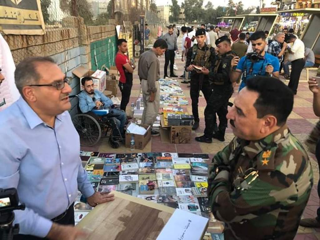 مشاركة الدكتور طارق محمدطيب القصار التدريسي في كليتنا بمبادرة مجموعة الحماية المدنية على رصيف الكتب