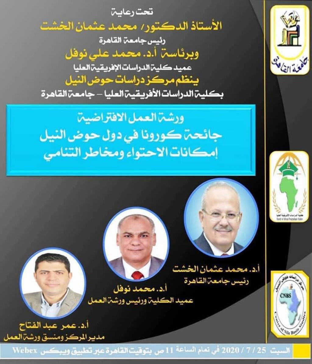 شارك المدرس المساعد السيد (خيرالله سبهان الجبوري) التدريسي في فرع السياسة العامة بكليتنا في ورشة عمل نظمها مركز دراسات حوض النيل في جامعة القاهرة تحت عنوان “جائحة كورونا في دول حوض النيل امكانية الاحتواء ومخاطر التنامي” وذلك يوم السبت الموافق 25 تموز 2020 عبر تطبيق ويبكس Webex.