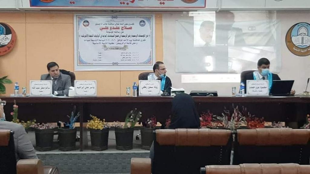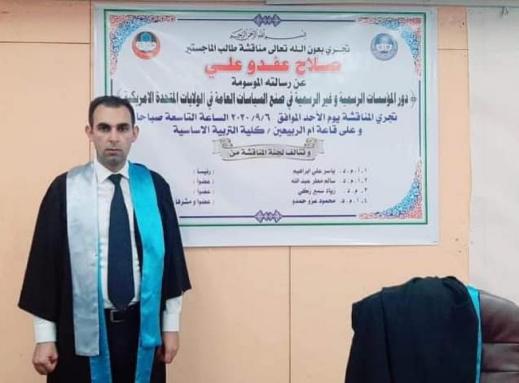 مناقشة رسالة الماجستير الموسومة (دور المؤسسات الرسمية وغير الرسمية في صنع السياسات العامة في الولايات المتحدة الأمريكية) في كلية العلوم السياسية