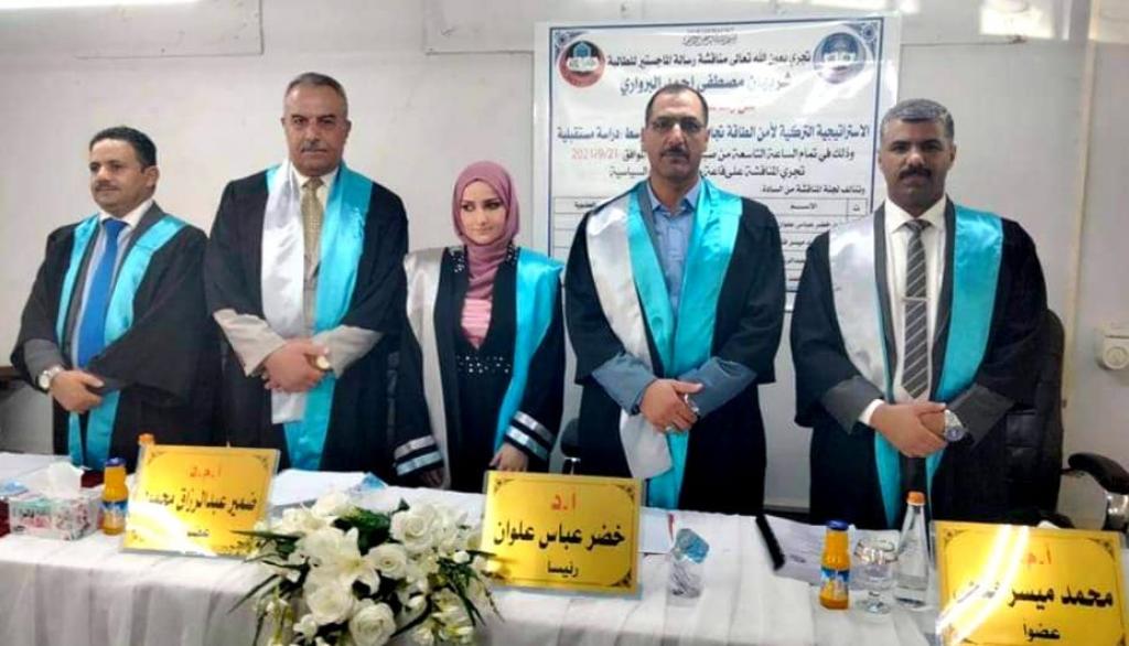 ناقشت كلية العلوم السياسية بجامعة الموصل رسالة الماجستير الموسومة (الاستراتيجية التركية لأمن الطاقة تجاه منطقة شرق المتوسط : دراسة مستقبلية) يوم الثلاثاء الموافق ٢١ / ٩ / ٢٠٢١ للطالبة شريهان مصطفى أحمد في قاعة المناقشات بكلية العلوم السياسية.وحضر جانبا منها الأستاذ المساعد الدكتور طارق محمدطيب القصار عميد الكلية وعدد من تدريسييها.موضوع الرسالة:جاءت هذه الرسالة لبحث جملة المتغيرات الإقليمية والدولية التي أنتجت سلسلة من التهديدات غير التقليدية التي باتت تشكل خطرا على بنية الأمن القومي التركي، وأهمها أمن الطاقة، مما عكس ذلك على الاستراتيجية الامنية التركية، لاسيما بعد اكتشاف مكامن الطاقة في منطقة شرق المتوسط، وتبني تركيا الأدوات السياسية والعسكرية والطاقوية في المنطقة لأمننة الطاقة فيها، من منطلق عقيدتها المسماة ب”الوطن الأزرق التركي”، مما حدا بالفواعل الإقليمية والدولية إلى تبني استراتيجات مضادة لها في المنطقة، ومن ثم تعقد البيئة الأمنية للطاقة في المنطقة، وهو ما أدى إلى تقديم جملة من تنبؤات مستقبلية تحاول استشراف المشاهد الأمنية للطاقة التركية في شرق المتوسط؛ بغية الوقوف على جملة نتائج ومشاهد تحليلية واستشرافية لجدلية صراع الطاقة القائم في شرق المتوسط.وتألفت لجنة المناقشة من السادة:١- أ.د خضر عباس عطوان رئيساً.٢ – أ.م.د محمد ميسر فتحي عضواً٣ – ا.م.د ضمير عبدالرزاق محمود عضواً٤ – أ.م.د طارق محمد ذنون عضواً ومشرفاً.وبعد مناقشة علمية مستفيضة في محتوى الرسالة ودفاع الطالبة عنها اجيزت وأصبحت مؤهلة لنيل درجة الماجستير في العلوم السياسية.