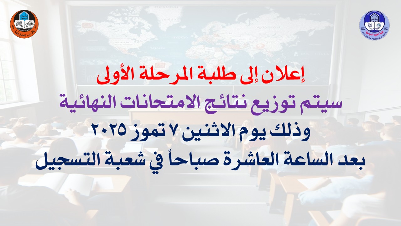 انتهاء الامتحانات النهائية لطلبة الدراسات العليا (الكورس الثاني) في كلية العلوم السياسية جامعة الموصل للعام الدراسي 2024 – 2025 بنجاحشارع المجموعة الثقافية الرئيسي