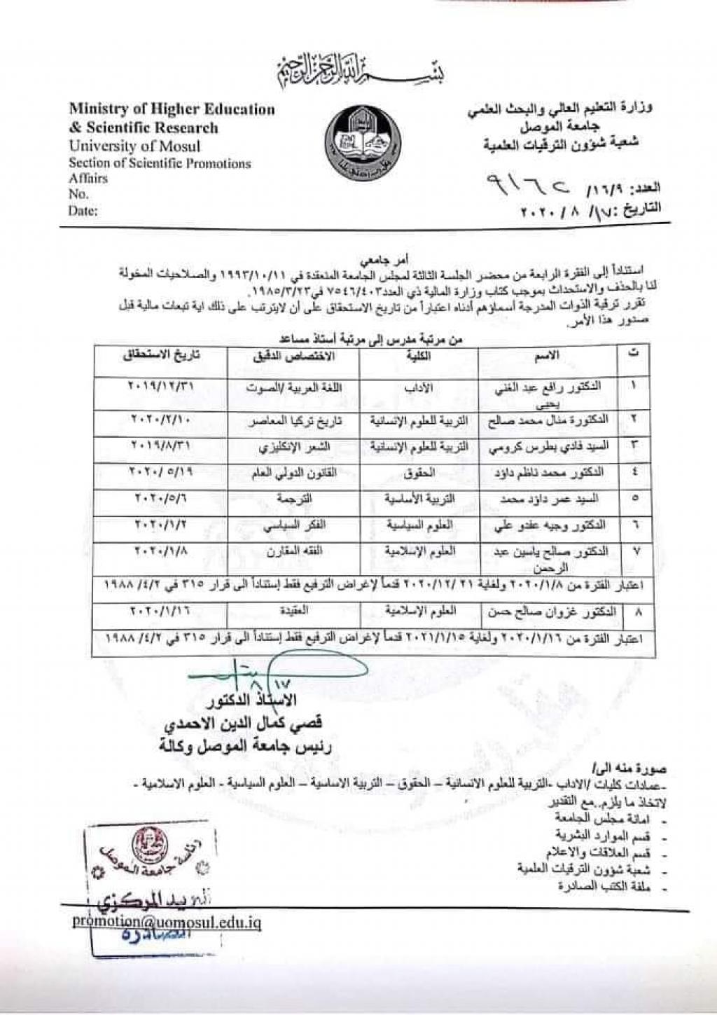 نيل تدريسي من كليتنا مرتبة استاذ مساعد بإختصاص الفكر السياسي