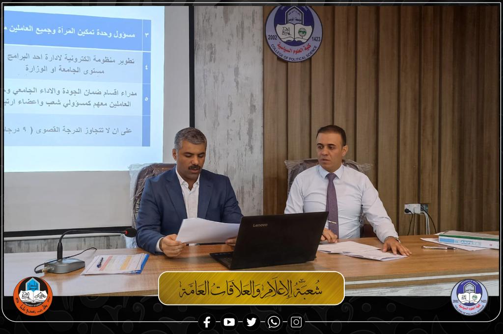 ورشة علمية في كلية العلوم السياسية حول ضوابط وتعليمات ودليل ملف تقييم الأداء للتدريسيين