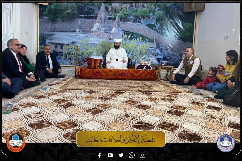 بناءً على توجيهات الأستاذ الدكتور قصي كمال الدين الأحمدي، رئيس جامعة الموصل، في تعزيز دور الجامعة في المجتمع وبث رسالة التعايش والسلام بين ابناءه ومكوناته، وترسيخ أسس الترابط الوطنية والثقافية بين المُكونات الدينية والاجتماعية لمحافظة (نينوى)؛ وبالتعاون مع مؤسسة (بارزاني) الخيرية ومنظمة (جفين) لتنمية المجتمع؛ بادر اليوم وفدٌ تطوعي من كلية العلوم السياسية بجامعة الموصل ممثلاً بالأستاذ المساعد الدكتور طارق محمد طيب ظاهر، عميد كلية العلوم السياسية، وعدد من أساتذتها الأفاضل وطلبتها الأعزاء، بزيارة عددٍ من قادة المجتمعات الدينية المتآخية في محافظة نينوى يوم الثلاثاء الموافق 27 كانون الأول 2022.وقد استهدفت هذه الزيارة شخصيات ومناطق متعددة من المحافظة، بدءاً بسماحة (بابا شيخ علي شيخ الياس)، ثم عرّج الوفد إلى مطران أبرشية القوش (المطران ثابت)، ومنه إلى معبد (لالش) النوراني، وقد جرى استقبالهم من قبل وكيل أمير الأيزيدية في العراق والعالم السيد (جهور علي بك) ونجل الامير (أمير حازم تحسين بك)، وقد حمل السيد عميد الكلية المحترم لمضيفيه أصدق التمنيات القلبيّة للسيد رئيس الجامعة الأستاذ الدكتور قصي كمال الدين الأحمدي بدوام السلام والازدهار وأهمية التبادل المستمر لهذه الزيارات بهدف تمتين أواصر التلاحم الوطني وتعزيز الوشائج بين مختلف الفئات والشرائح والمكونات التي يتكون منها النسيج الاجتماعي المتضافر للمحافظة..