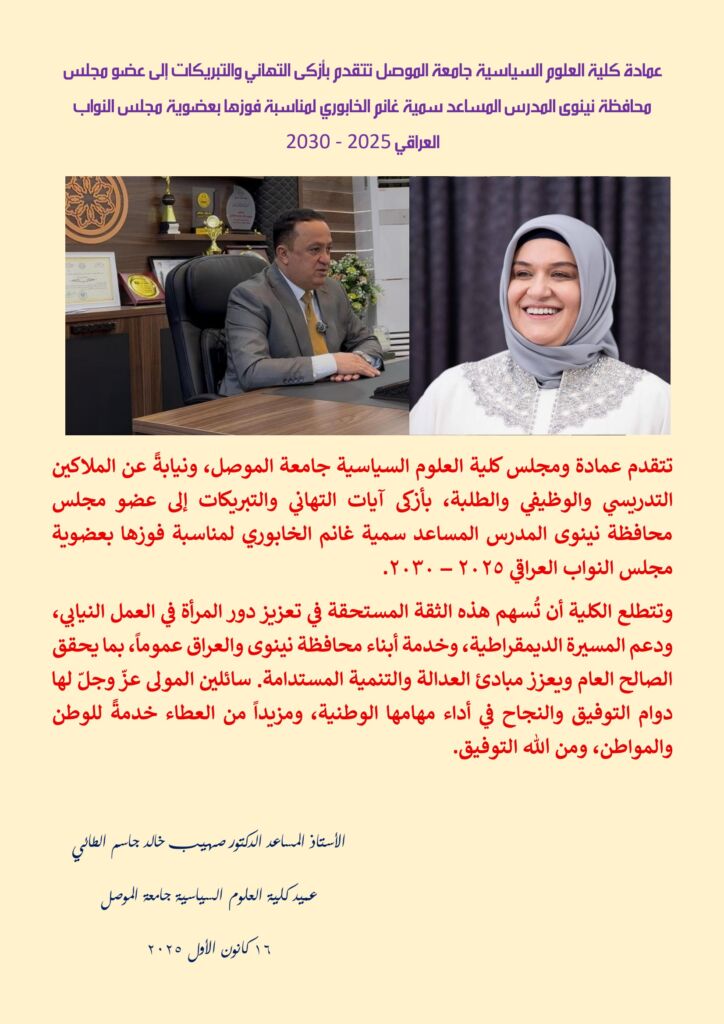 تحقيقاً لأهداف التنمية المستدامة، الهدف السادس عشر: السلام والعدل والمؤسسات القوية، وبالتعاون مع قسم الدراسات والتخطيط/ وحدة التنمية المستدامة وشعبة حقوق الإنسان (لرئاسة جامعة الموصل)، ووحدة التعليم المستمر (لكلية العلوم السياسية)، أقامت وحدةُ حقوق الإنسان الندوةَ العلمية، الموسومة: “الإعلان العالمي لحقوق الإنسان ودوره في تعزيز العدالة والمساواة”، وذلك يوم الاثنين 15 كانون الأول 2025.