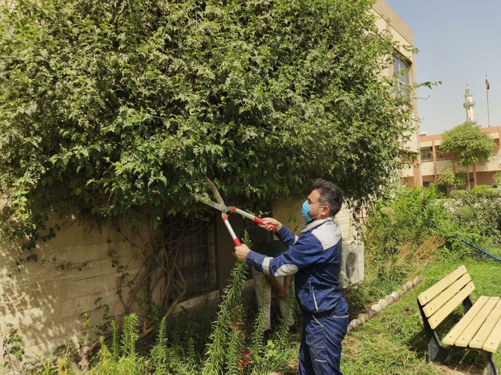 تواصُلُ أعمال تنظيف وإدامة حدائق كلية العلوم السياسية جامعة الموصل استعداداً للعام الدراسي الجديد