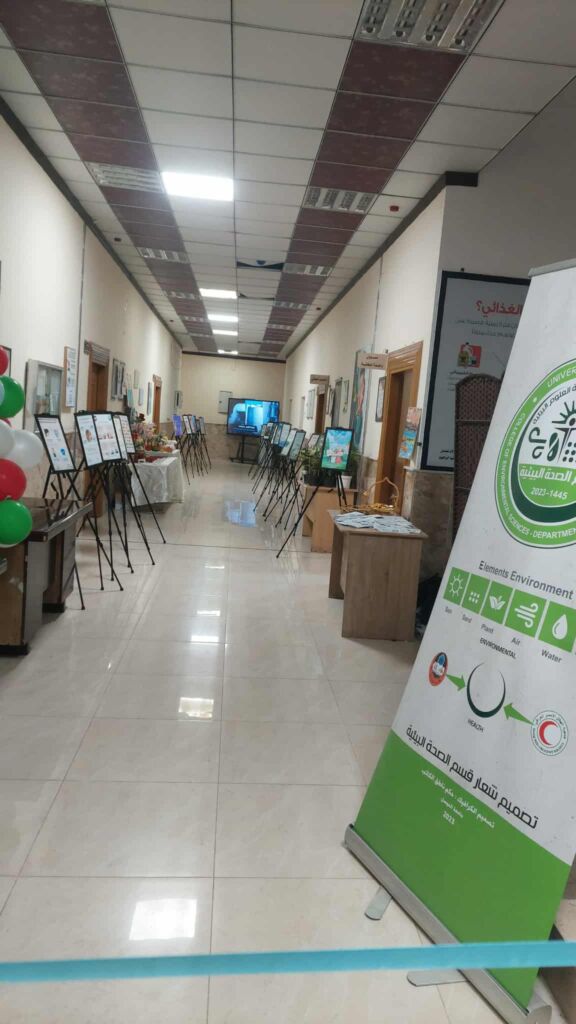 تضمّن المعرضُ عرضَ لوحات لأهم التشريعات واللوائح القانونية الخاصة بالصحة البيئية؛ مع ملصقات توعوية عن أهمية الحفاظ على البيئة العراقية، وبوسترات عن مخاطر المخلفات على البيئة العراقية، فضلا عن ركن للنباتات الطبيعية، تشجيعا للبيئة الجامعية الخضراء.