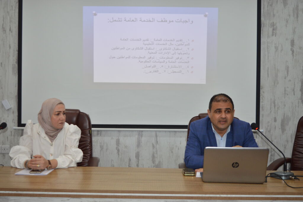 تضمّن اليوم الأول محاضرة واحدة للمعاون الإداري الأستاذ المساعد الدكتور علي حسين ياسين، والموسومة: “واجبات موظف الخدمة العامة”.