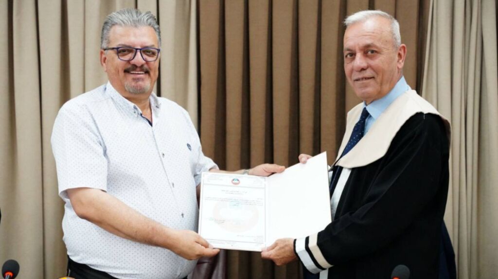 ترأس لجنة المناقشة الأستاذ الدكتور رافع ﺇبراهيم محمد، وبعضوية عدد من التدريسيينَ الآخرين، من بينهم تدريسي فرع السياسة العامة لكلية العلوم السياسية الأستاذ الدكتور صلاح الدين سليم محمد.