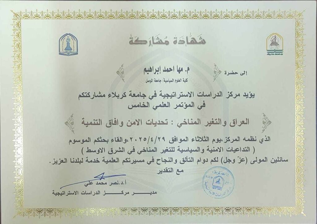 أقامت شعبة الارشاد النفسي والتوجيه التربوي لكلية العلوم السياسية جامعة الموصل ورشتها الإرشادية، والموسومة: ” المشاركة السياسية للمرأة في عملية صنع القرار السياسي”، وذلك يوم الأحد 20 نيسان 2025.
