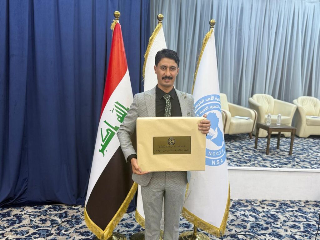 تحقيقاً لأهداف التنمية المستدامة، الهدف الرابع: التعليم الجيد، والهدف السادس عشر: السلام والعدل والمؤسسات القوية، وبالتعاون مع قسم الدراسات والتخطيط/ وحدة التنمية المستدامة (في رئاسة جامعة الموصل)؛ حصل بحث تخرج الطالب (خريج كلية العلوم السياسية للعام الدراسي 2024 – 2025) ثامر سليمان يونس على المركز الأول بين الجامعات العراقية في مجال مكافحة التطرف العنيف. وأشرف على بحثه، الموسوم: “استراتيجية الأمن الوطني العراقي في مواجهة التطرف والإرهاب الفكري والالكتروني” كلٌّ مِنْ تدريسيي فرع العلاقات الدولية الأستاذ المساعد الدكتور مروان سالم علي والأستاذ المساعد جاسم محمد طه. وإزاءً لذلك، أقامت وزارة التعليم العالي والبحث العلمي ومستشارية الأمن القومي العراقي مؤتمراً خاصاً بالتكريم، وذلك يوم الخميس 4 كانون الأول 2025. وحضرَ مراسم التكريم مستشار الأمن القومي العراقي السيد قاسم الأعرجي، ووكيل الوزارة لشؤون البحث والتطوير الأستاذ الدكتورة لبنى خميس مهدي، وعدد من عمداء الكليات، بعض القيادات الأكاديمية والأمنية.