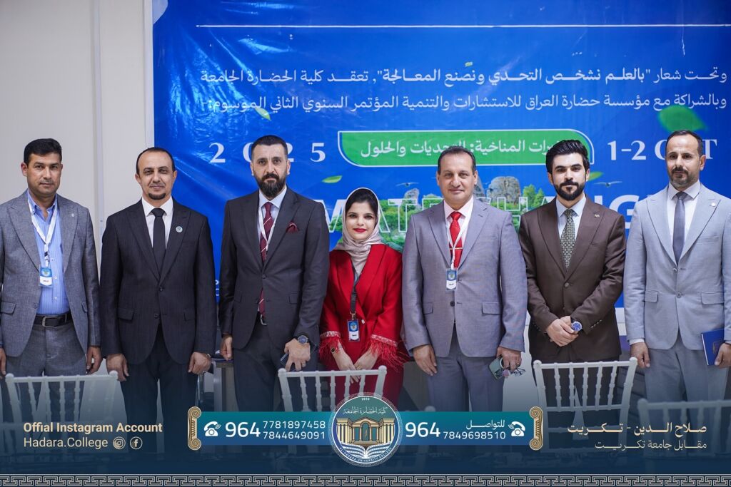 تحقيقاً لأهداف التنمية المستدامة، الهدف الثالث عشر: العمل المناخي، والهدف السابع عشر: عقد الشراكات لتحقيق الأهداف؛ أقامت كلية الحضارة الجامعة مؤتمرها السنوي الثاني الموسوم: “التغيرات المناخية: التحديات والحلول”، وذلك للمدة 1 – 2 تشرين الأول 2025. شهد المؤتمر مشاركة واسعة لعشرات الأكاديميين والباحثين والمختصين من مختلف الجامعات. ومن جانب كلية العلوم السياسية جامعة الموصل، فقد حضره واشترك في فعالياته كلٌّ من الأستاذ الدكتور سالم مطر عبدالله، والأستاذ المساعد الدكتور يونس مؤيد يونس، والمدرس المساعد داليا عادل شيت، والمدرس المساعد أنسام سليم مهدي، والمدرس المساعد فنر عماد خليل.