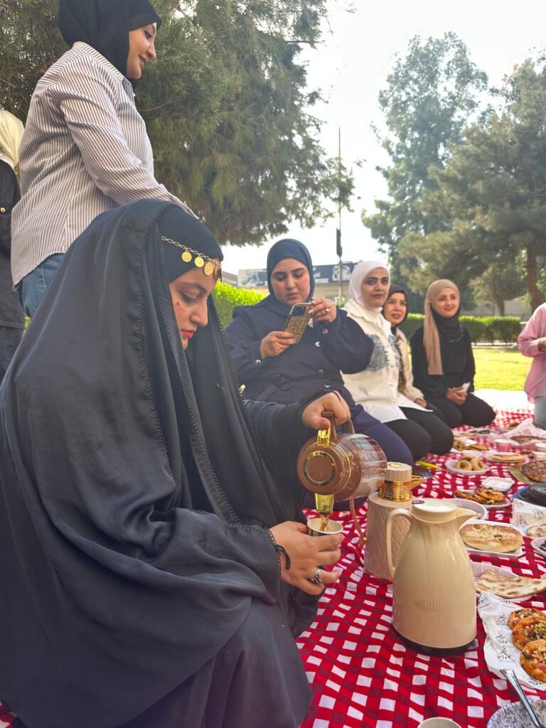 تخللت الأصبوحة فعاليات اجتماعية تهدف إلى تعزيز روح الألفة والوحدة بين الطالبات، إذ طُلب منهنّ ارتداء أزياء تعبّر عن قومياتهنّ المختلفة، وإعداد فطور جماعي مشترك يجسد قيم التعاون والتنوع الثقافي داخل الكلية، في مبادرة تؤكد أنْ لا فرقَ بين القوميات او الطوائف أو الأديان، فالجميع واحد يجمعهم الانتماء الإنساني والجامعي المشترَكَيْنِ.