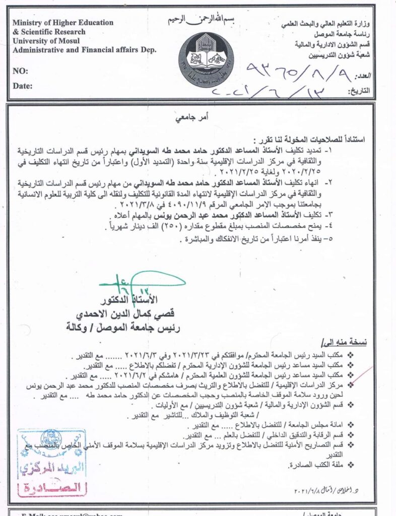أقام مركز الدراسات الإقليمية حلقة نقاشية بعنوان (العلاقات العراقية الخليجية بعد العام 2003) للدكتور عبد الرزاق خلف محمد الطائي ، وبحضور كادر المركز من تدريسيين وباحثين في يوم الأربعاء الموافق 28 نيسان 2021 .قال “الطائي” إن البحث يهدف لمعرفة طبيعة علاقة العراق مع دول الخليج العربية بعد 2003 ومناقشة وتحليل العوامل المؤثرة فيها.أضاف الباحث أنه وبعد العام 2003 بدأت مرحلة جديدة في علاقات العراق الخارجية مع محيطة الإقليمي ومنها دول مجلس التعاون الخليجي متأثرة بالمتغيرات والعوامل السياسية والأمنية التي أحاطت بالعراق بعد الإحتلال ، وبرغم إعتراف دول الخليج بالعملية السياسية التي شهدها العراق وزيارة الوفود الحزبية والرسمية العراقية المتكررة لدول مجلس التعاون الخليجي الى أن علاقات دول الخليج العربية كانت غير متفاعلة ومتباينة مع الحكومات العراقية المتعاقبة.أكد الباحث أن البحث إتبع المنهج التوثيقي الوصفي في الكتابة دون إغفال الجانب التحليلي ، ليغطي المدة الزمنية الممتدة من 2003-2019 من أجل تضمين أبرز الأحداث والتطورات الخاصة بالعلاقات العراقية مع دول الخليج العربية قدر الإمكان .قسم البحث إلى مبحثين رئيسيين وخاتمة اشتملت على أهم الإستنتاجات التي توصل لها البحث ، إذ تبين أن العلاقات العراقية الخليجية مرت بمراحل ومنعطفات على مدى السنوات السابقة أثرت عليها البيئة الخارجية من جهة والظروف التي مر بها العراق وتوجهات الحكومات العراقية من جهة أخرى.