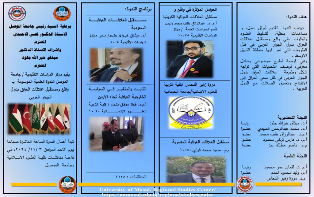 أقام مركز الدراسات الإقليمية محاضرة بعنوان “إطار مقترح لاقتصاد عراقي ذكي”، ألقاها الاستاذ الدكتور ميثاق خيرالله جلود، مدير المركز، في 6 تشرين الثاني 2024، بهدف مناقشة سبل تحقيق تحول اقتصادي مستدام وذكي وفعال في العراق، قائم على استراتيجيات متطورة وكفاءة في استثمار الموارد.